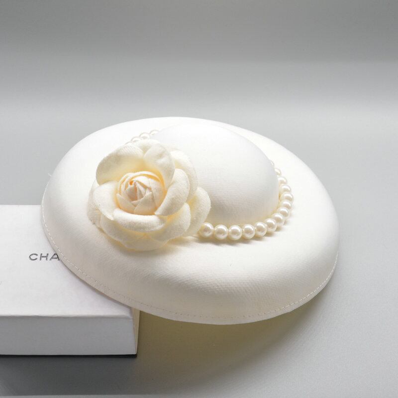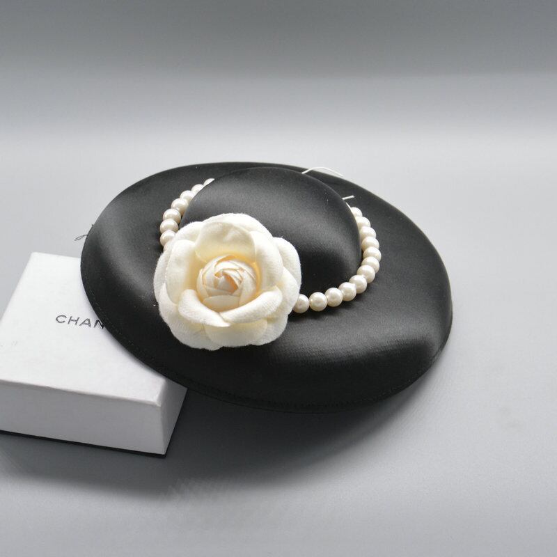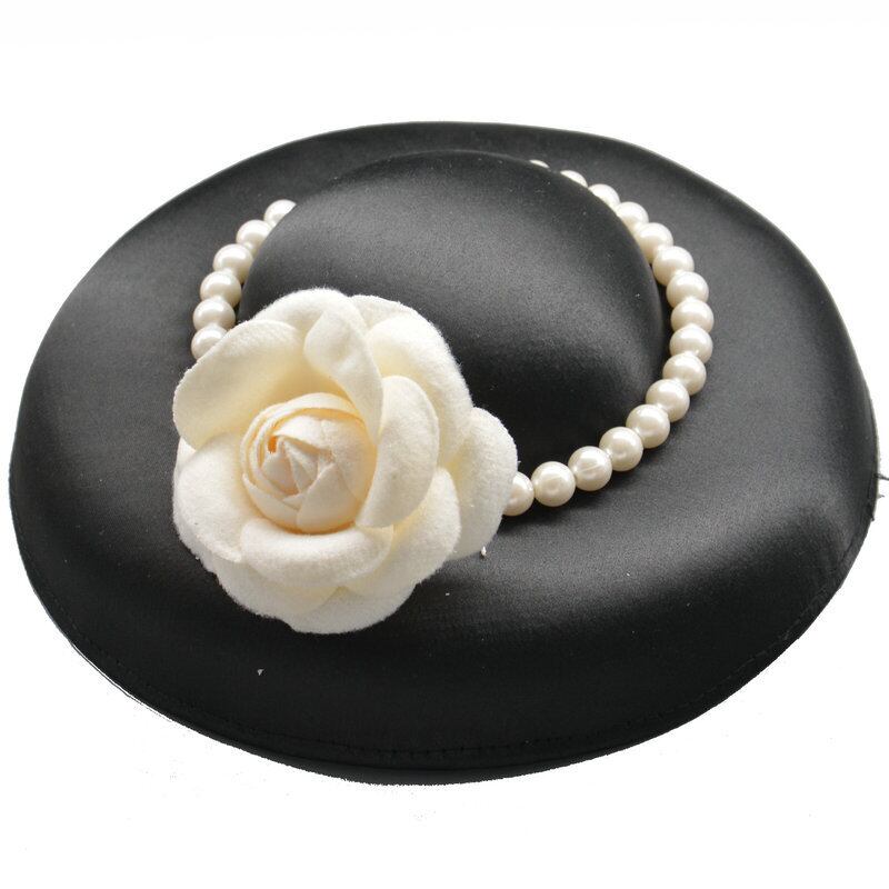 色:ブラックサテンハット+パール+ベージュフラワー,ベージュサテンハット+パール+ベージュフラワー,ベージュのサテンの帽子+真珠+黒い花