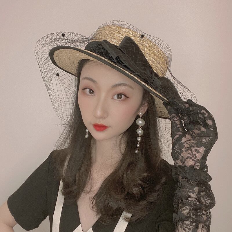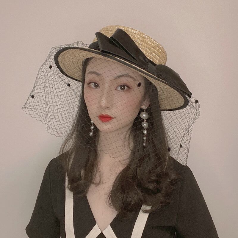 色:黒の弓麦わら帽子