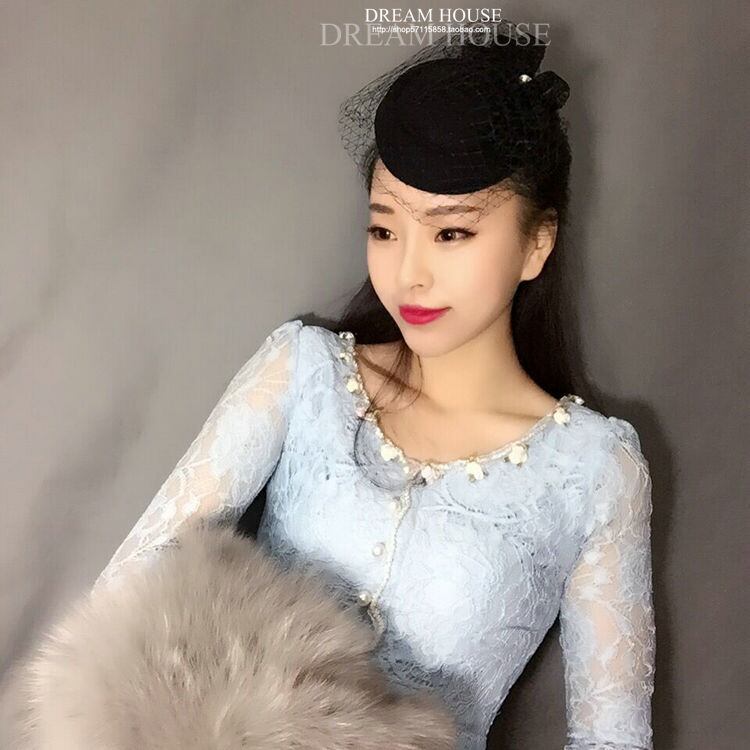 色:ベージュの小さなキャップと弓のベール,弓のベールが付いている黒い帽子,白い帽子+白い大きな弓のベール,ベージュのヘアピン,黒いヘアピン