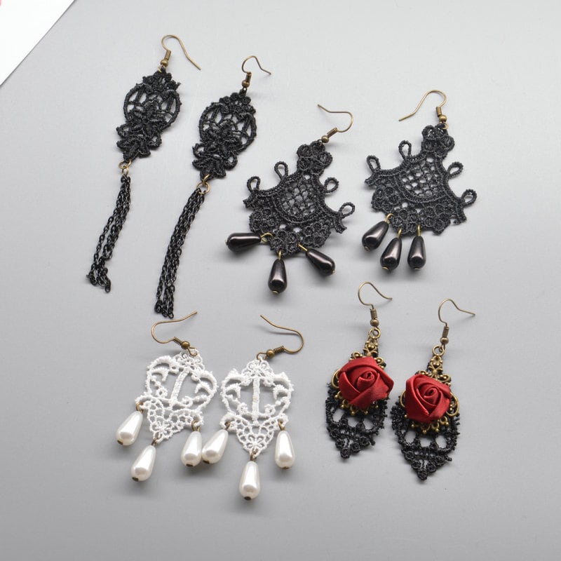✞ レース花柄ロングイヤリング スタンダード レトロ スウィート 指輪 フラワーデザイン ✞ゴスロリ SM ミリ 甘ロリ クラロリ 和ロリ エレガント 黒ロリ 姫ロリ 華ロリ 20A37736881124 | Albertina Gothic 2nd