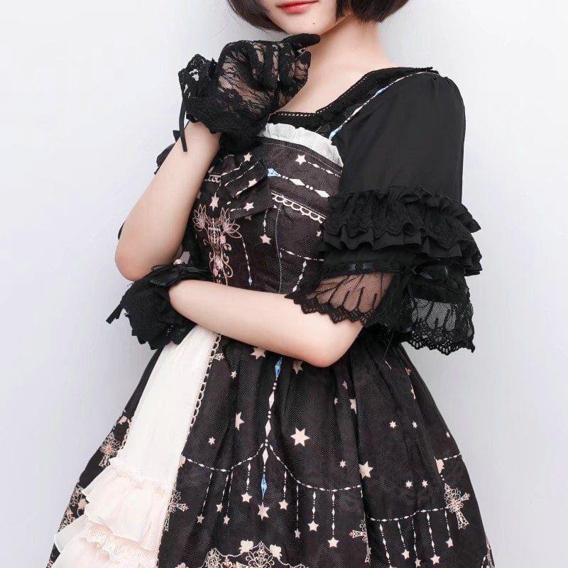 ✞ ショートレースグローブ ブラック白アクセサリー ホワイト ✞ゴスロリ SM ミリ 甘ロリ クラロリ 和ロリ エレガント 黒ロリ 姫ロリ 華ロリ 20A76212016720 | Albertina Gothic 2nd