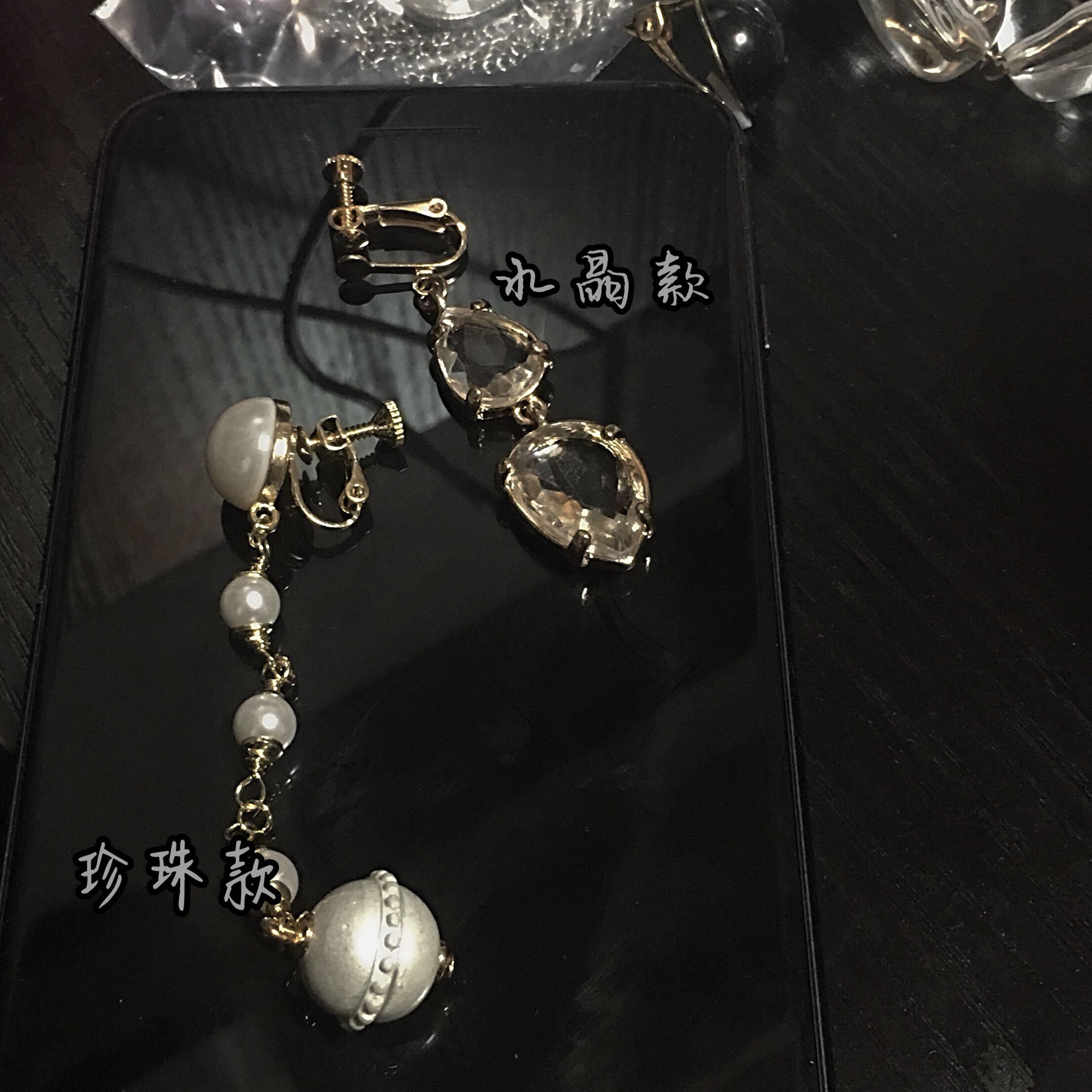色:一連の長い真珠の耳クリップ,クリスタルイヤークリップのストリング,クリスタルイヤリングのストリング