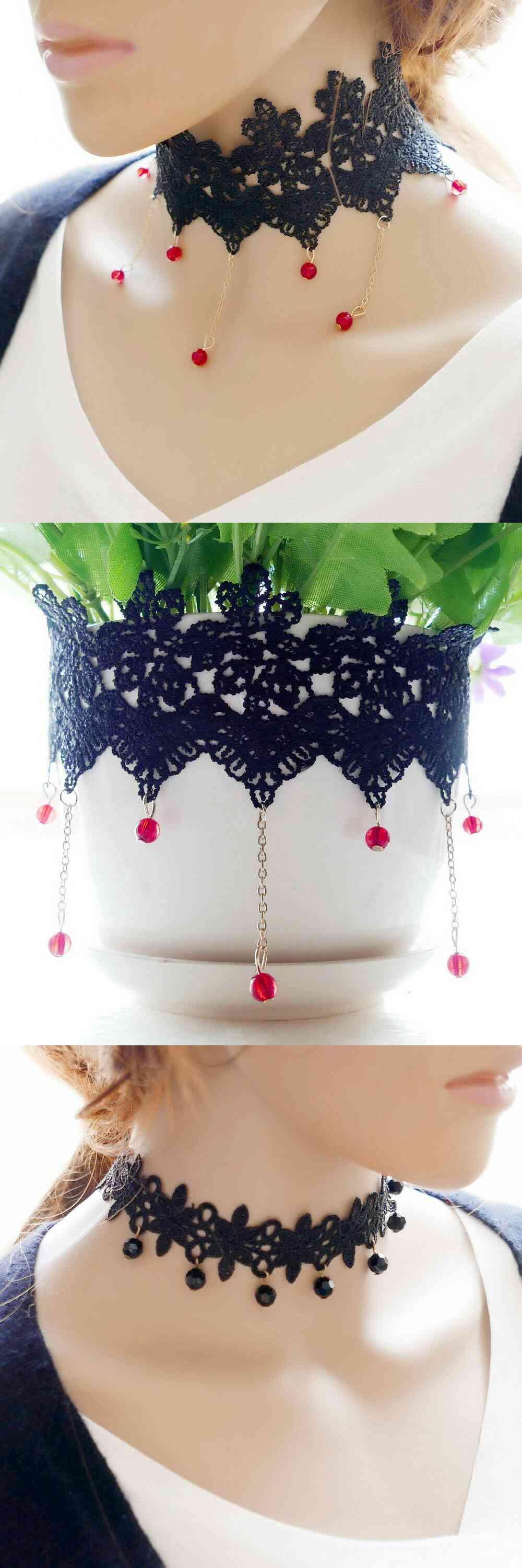 ✞ ブラック白レースネックレス ドレス ワンピースチェーン アクセサリー 大人女子☆ ホワイト ✞ゴスロリ SM ミリ 甘ロリ クラロリ 和ロリ エレガント 黒ロリ 姫ロリ 華ロリ 19A22511131854 | Albertina Gothic 2nd