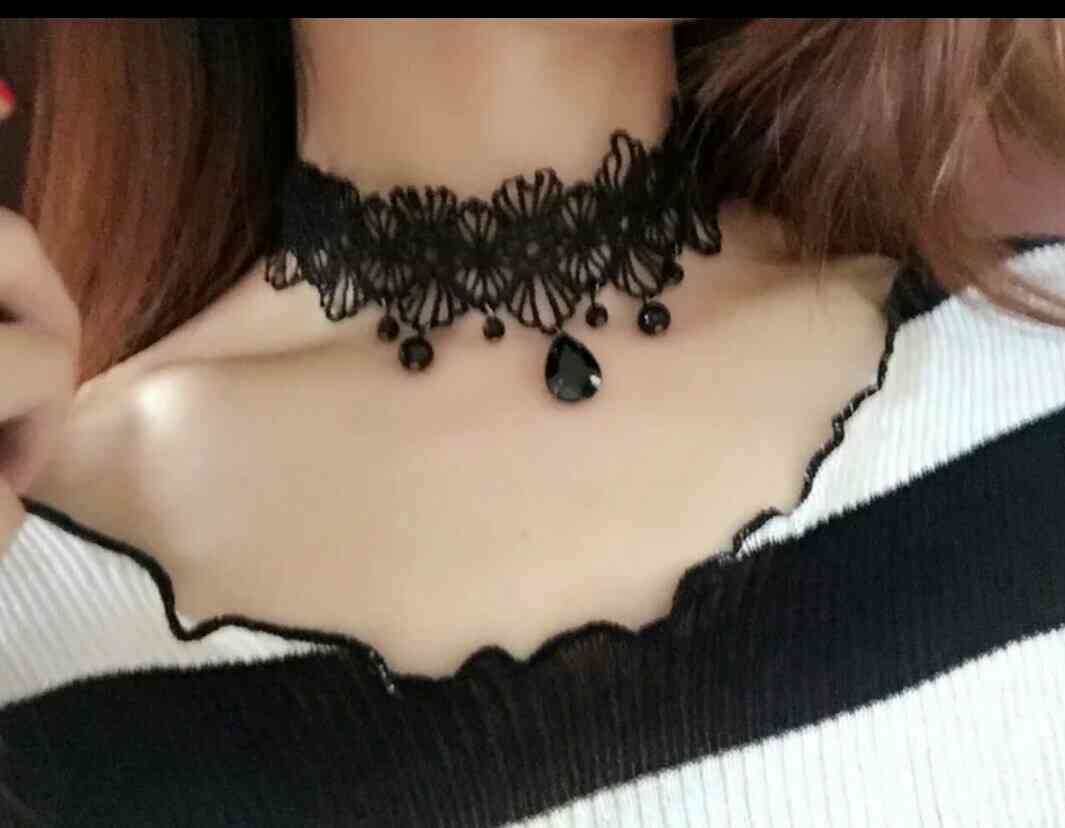 ✞ ブラックレースアクセサリー ショートチェーン ネックレス 大人女子☆ ペンダント ✞ゴスロリ SM ミリ 甘ロリ クラロリ 和ロリ エレガント 黒ロリ 姫ロリ 華ロリ 19A12815151303