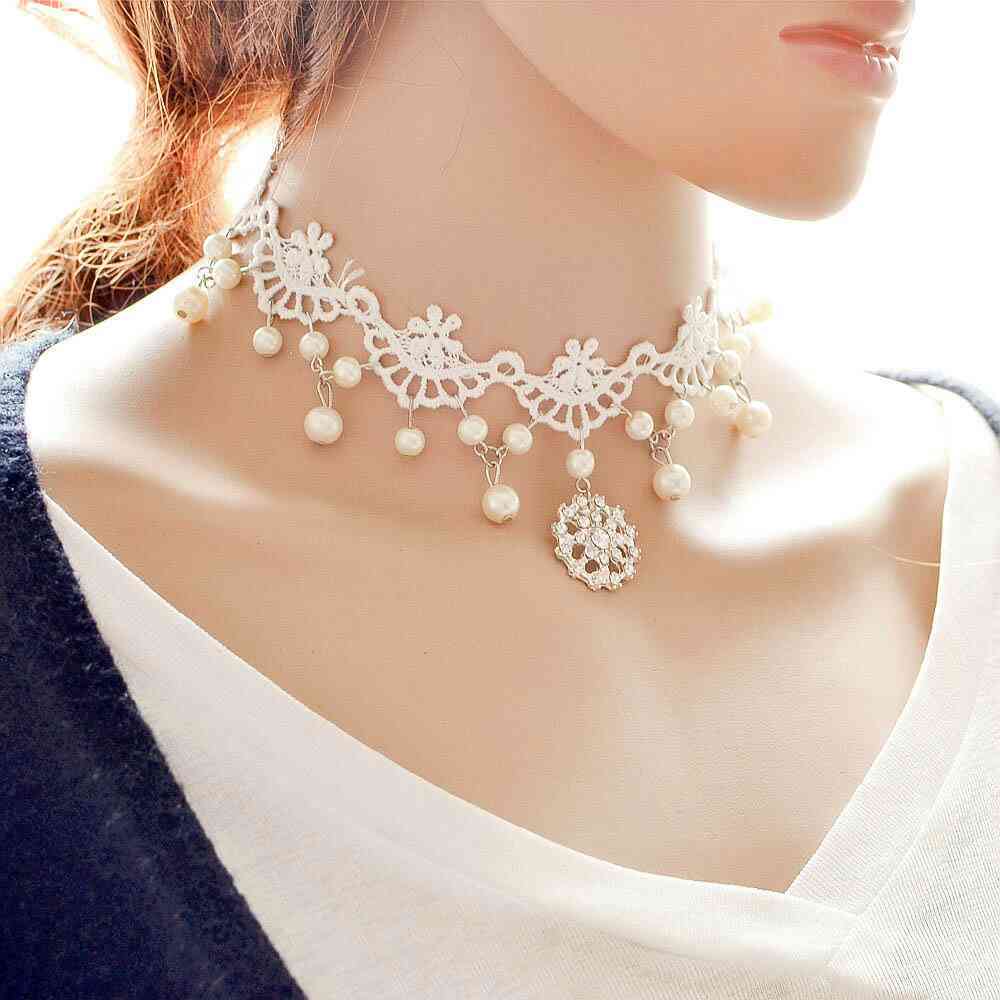 ✞ ネックレス レースレッドパール花柄アクセサリー チェーン チョーカー ペンダント 真珠 フラワーデザイン ✞ゴスロリ SM ミリ 甘ロリ クラロリ 和ロリ エレガント 黒ロリ 姫ロリ 華ロリ 19A66825109351 | Albertina Gothic 2nd