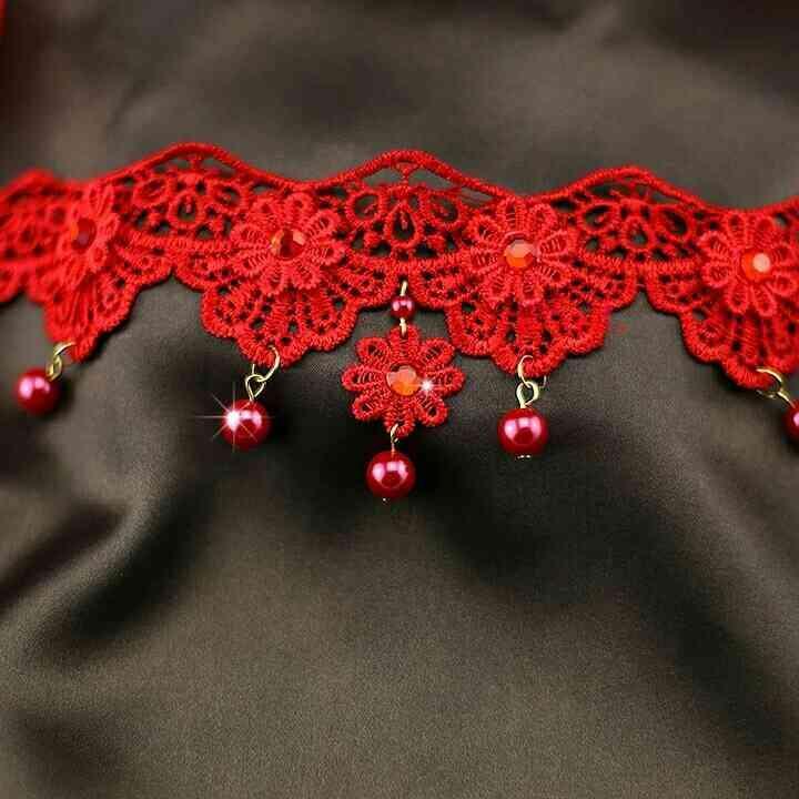 ✞ レース花柄アクセサリー ネックレス パールレッド ペンダント 真珠 フラワーデザイン ✞ゴスロリ SM ミリ 甘ロリ クラロリ 和ロリ エレガント 黒ロリ 姫ロリ 華ロリ 19A43330243871 | Albertina Gothic 2nd