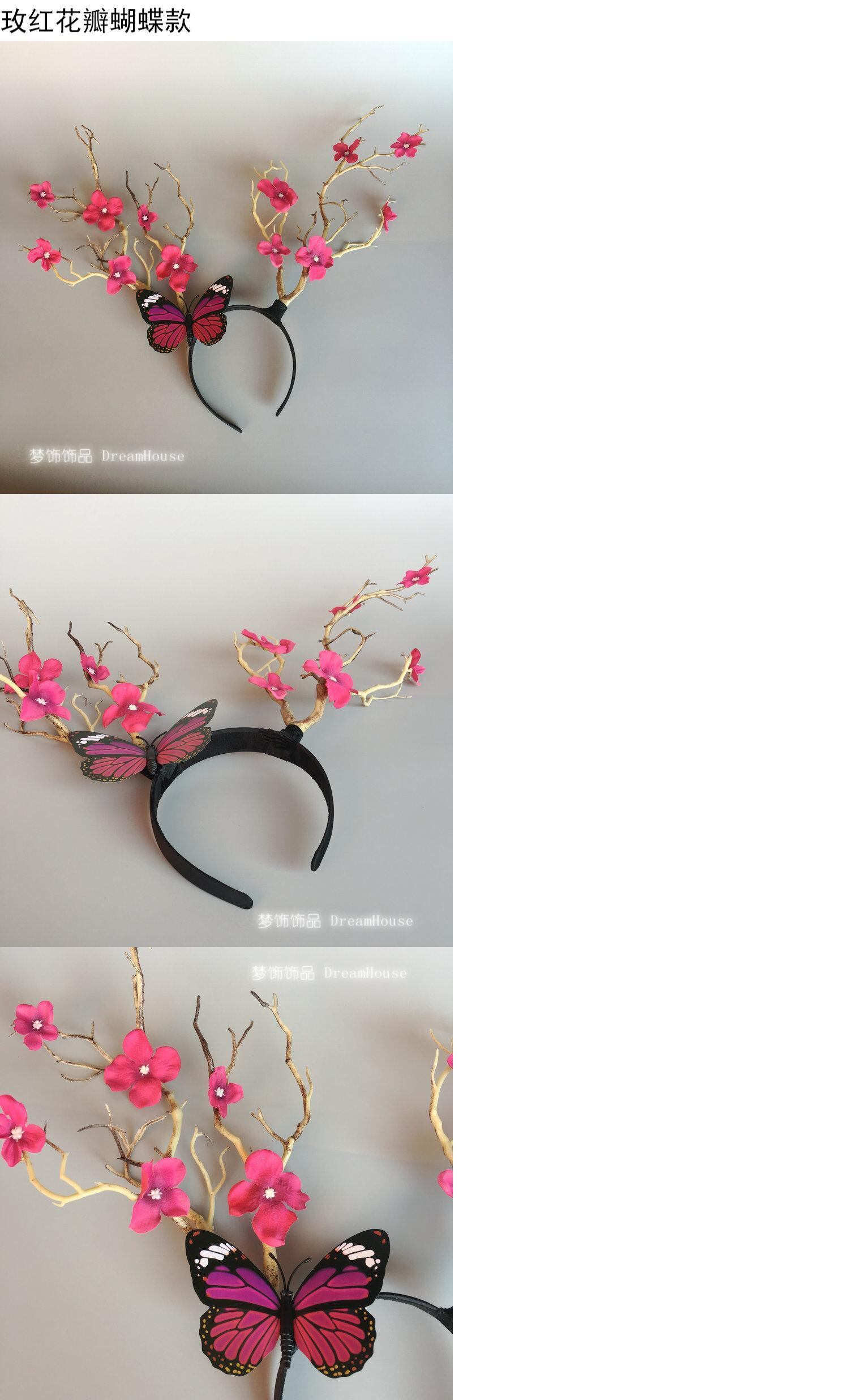 色:白い,ダークカーキ,青黒,バラの花びらの蝶,ピンクの花びらを持つ枝角,ホワイトバタフライアントラーズ,青と黒の蝶の角,銀,ゴールド