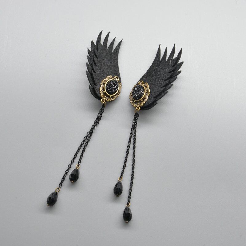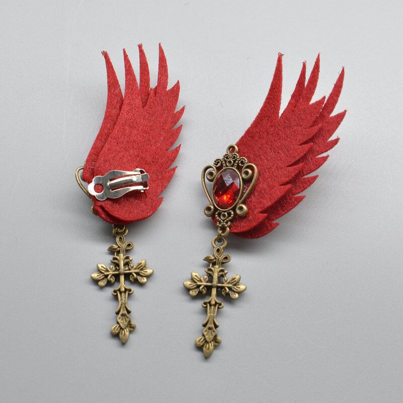 色:黒の電話のペア,ワインの赤い十字架のペア,コウモリのペア,ブラックスカルイヤリング