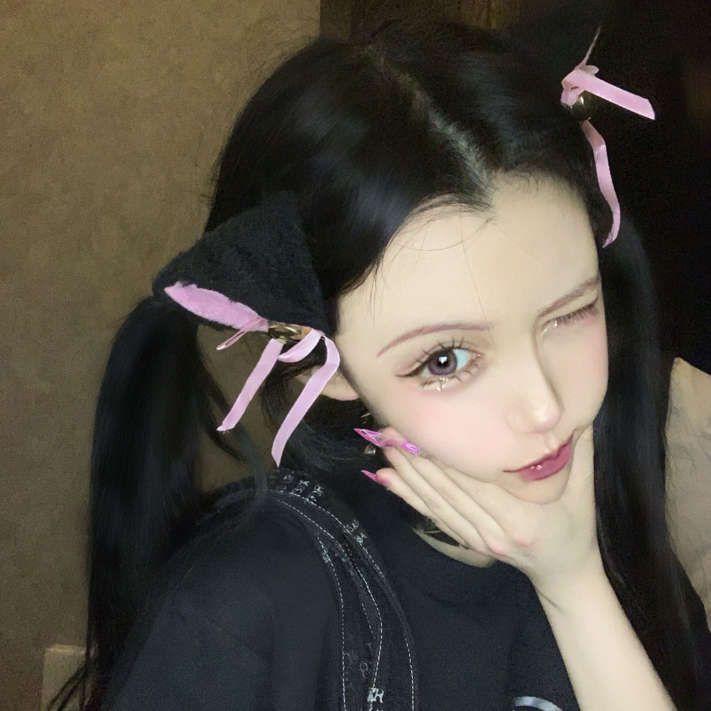 色:ここにペア(つまり2つ)のブラックピンクの耳があります