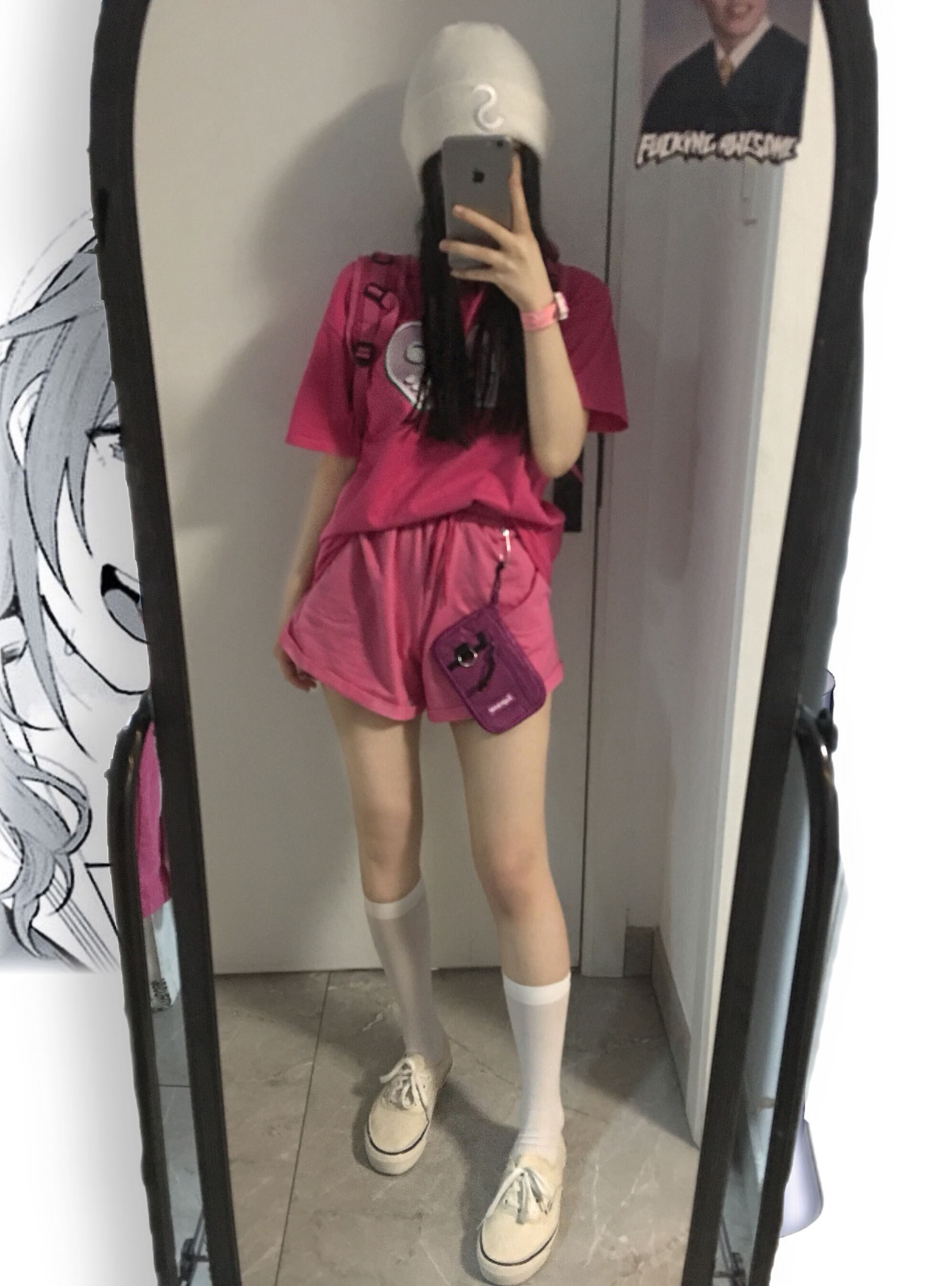 色:ローズピンクの半袖ワンピース,かわいいピーチショーツのペア