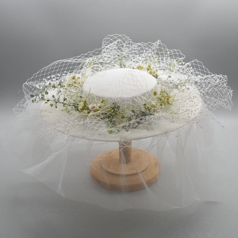 色:白いメッシュ,装飾のない白い帽子の胚