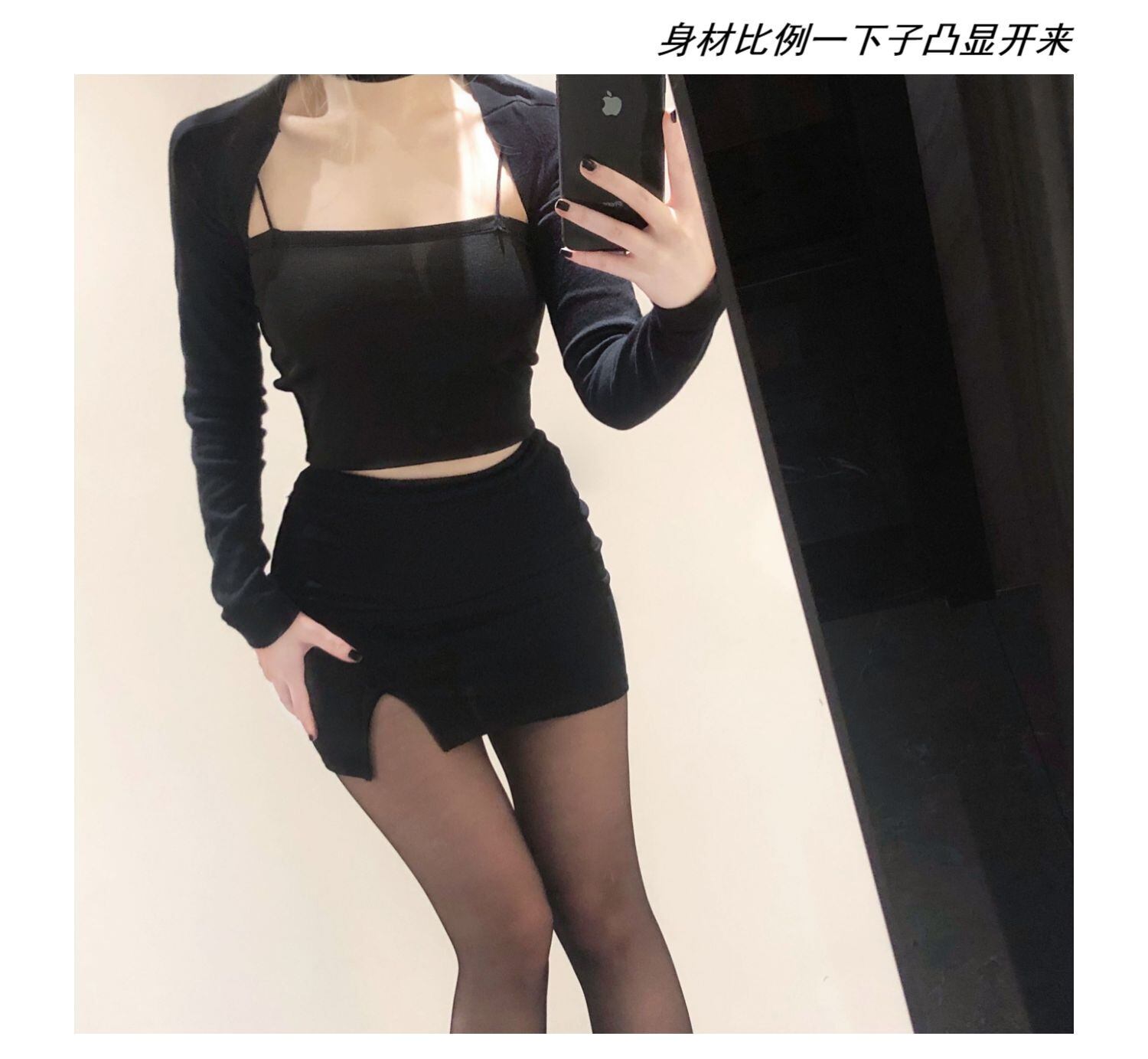 色:ホワイトツイストボウコート,ブラックツイストボウコート,小さなインナーベスト(無料の1つの襟,黒のベスト,セクシーなシフォンミニスカート